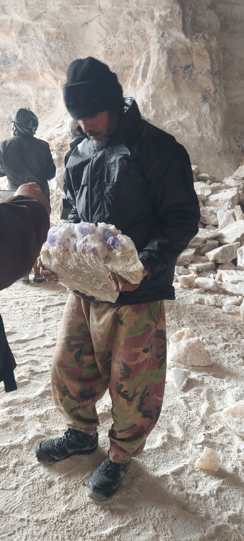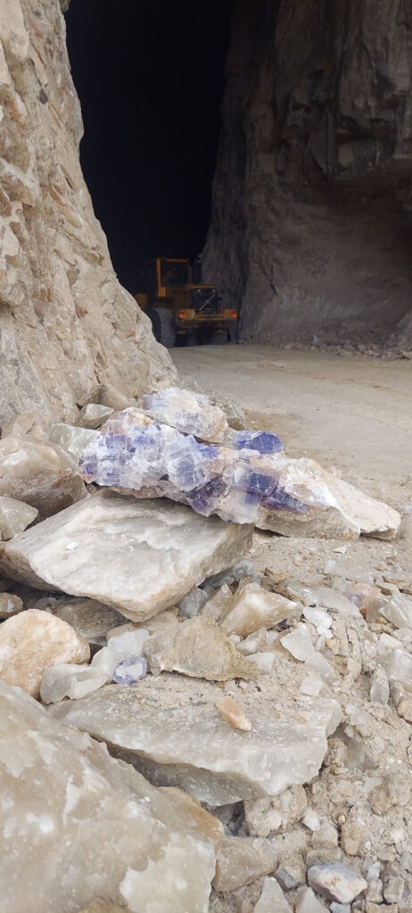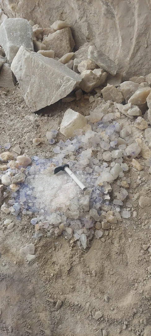 The drilling time of the blue salt mine can take months or even years, depending on the quality and quantity of the salt. After the salt is mined, it is crushed and sorted to obtain the beautiful blue crystals that are ready for use. After various operations, such as explosions, large chunks of rock salt are extracted from the mountain and fall to the ground. The workers are very hardworking, and with great effort they separate the crystal formations from the rock salt using tools like hammers, chisels and pickaxes. Heavy machinery such as loaders also operate in the mine.